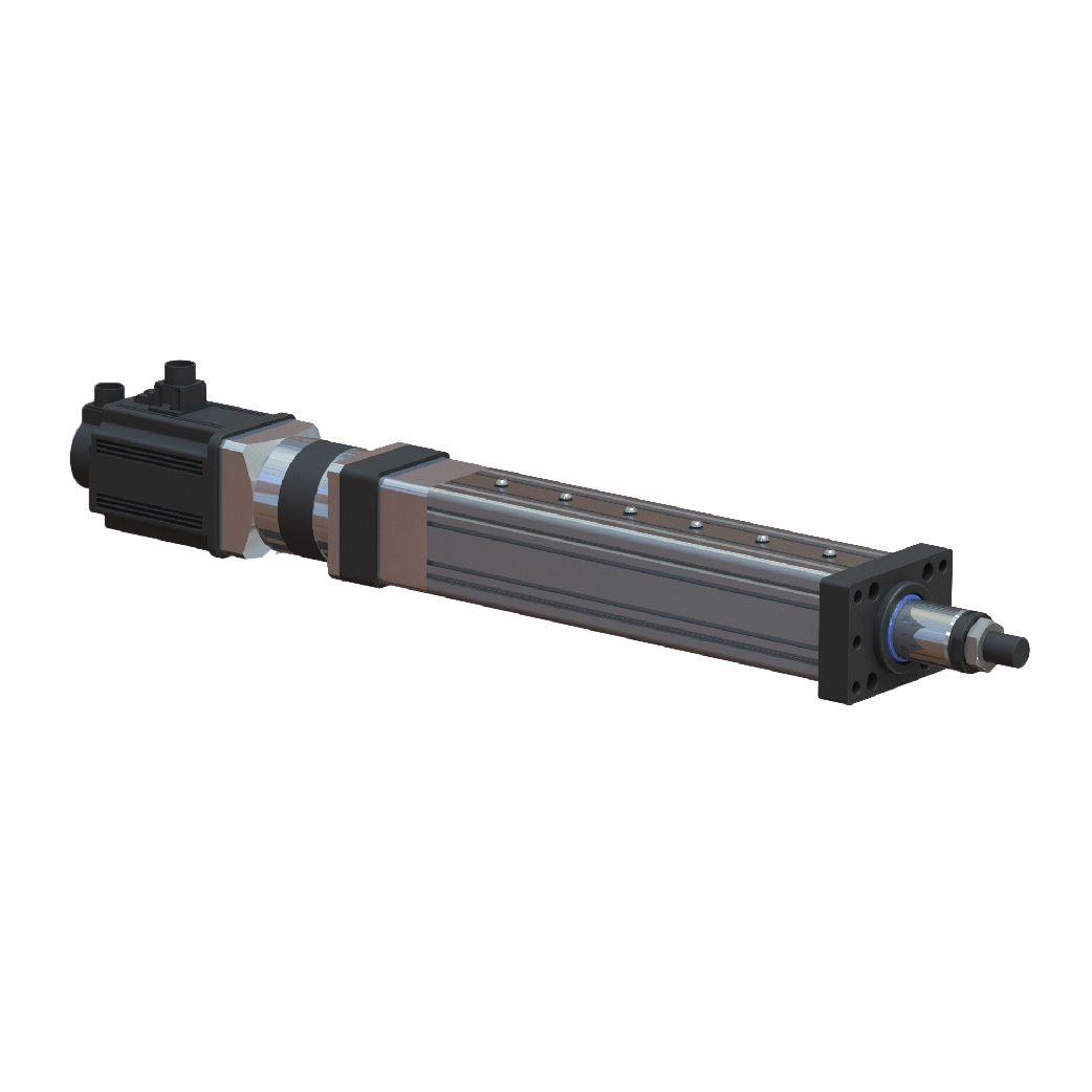 直线式电动缸采用模块化设计方法,集成了伺服电机、伺服驱动器、高精度滚珠丝杆等要素,整个电动缸具有结构紧凑、惯量小、响应快、刚性高、低噪音和寿命长等特点。伺服电机与电动缸的传动丝杆直接相连接,使伺服电机的编码器直接反馈电动缸活塞杆的位移量,减少了中间环节的惯量和间隙,提高了控制性、控制刚度和控制精度。伺服电机与电动缸整体相连,安装容易、设定简单、使用方便。