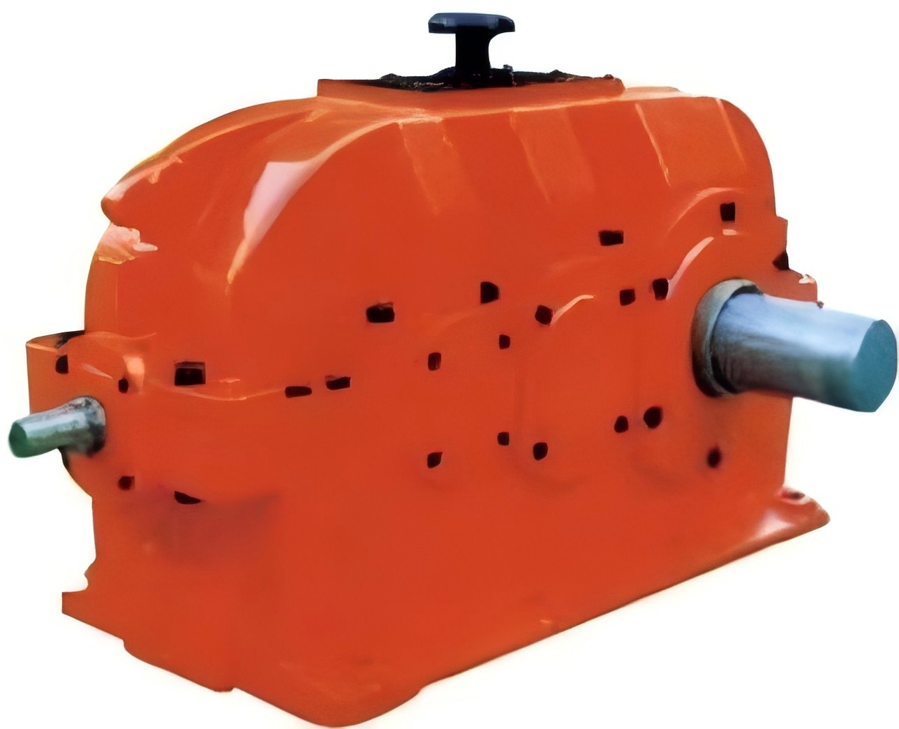 硬齿面圆柱齿轮减速机是按国家标准生产和设计的,其中心距,公称传动比的主 要参数均优化设计,其主要零件能互换,能使交货周期缩短。本机齿轮均采用优 质合金钢,经渗碳、淬火、磨齿等工艺使其达到精度高,承载能力大,效率高、 寿命长、传动平稳、噪音低。 一般冷却采用浸油润滑,在特殊情况下可安装风扇, 冷却盘管和油泵循环冷却。本机分为平行轴式: